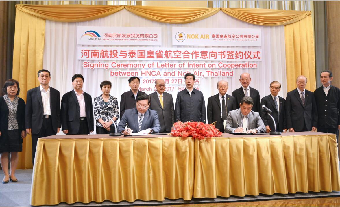 During March 26th and 27th , Governor of Henan Province, Chen Run’er and his delegation visited Thailand. HNCA signed a series of Letter of Intent on Cooperation with CP Group,Thai Smile Airways and Nok Airlines and reached agreements on aviation transportation, aviation logistics,international trade, aviation finance, culture and tourism.