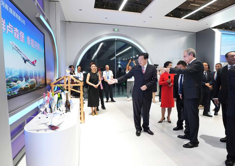 On September 12, 2024, the 2nd China-EU Geographical Indications Forum opened in Zhengzhou. José Zapatero, former Prime Minister of Spain, learned about how the Zhengzhou-Luxembourg Air Silk Road has promoted economic and trade cooperation between China and Europe at the booth of China Henan Aviation Group.
