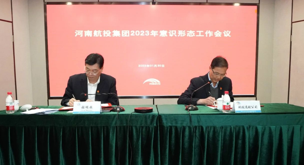 1月30日,河南航投集团在开云app登录入口服务中心召开意识形态工作会议,全面总结2022年意识形态工作整体情况,围绕“为努力打造航产龙头企业凝聚蓬勃精神力量”主题,研究部署2023年意识形态工作的重点任务。集团党委书记、董事长张明超作意识形态工作报告,党委副书记、工会主席郭艳红主持会议,领导班子其他成员,各级党组织书记和各单位主要负责人参会。