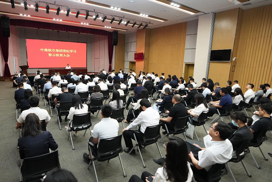 5月29日,中豫航空集团召开党纪学习警示教育大会,深入学习贯彻习近平总书记关于党纪学习教育重要讲话、重要指示精神,以案为鉴,教育引导党员干部学纪、知纪、明纪、守纪。集团党委书记、董事长张明超讲话,驻集团纪检监察组组长张啸主持会议,领导班子其他在郑成员、中层管理人员和党员代表参会。