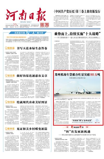 2018年,省政府、中国民航局联合发布《郑州国际航空货运枢纽战略规划》,明确了郑州机场国际航空货运枢纽的战略定位。在“空中丝路”的引领带动下,郑州机场国际货邮吞吐量已连续多年位居全国第五,外向型特征明显。今年截至12月20日,郑州机场国际货邮吞吐量完成45.6万吨,占全部货量的57.2%,同比增长22.1%。