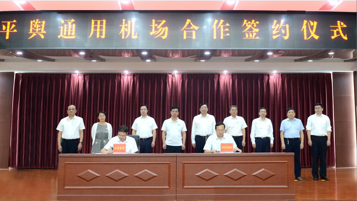 9月15日,河南航投通用航空投资有限公司(以下简称航投通航)与平舆县人民政府签署通用航空战略合作协议。河南航投党委书记、董事长张明超,驻马店市政协副主席张新领、平舆县委书记张怀德等出席签约仪式。