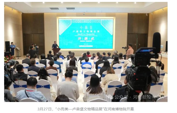 3月27日,“小而美—卢森堡文物精品展”在河南博物院开幕。来自卢森堡大公国的210件(组)珍宝首次出国外展,经由郑州—卢森堡“空中丝路”,豫卢间首次实现文物双向交流。卢森堡驻华大使卢睿朗出席开幕式,河南航投集团副总经理渠长振代表集团参加。