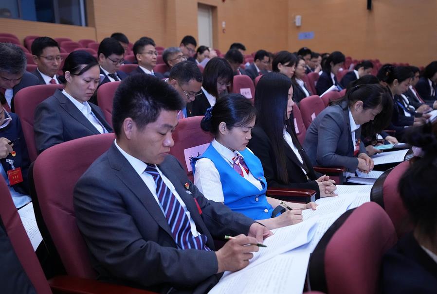 集团党委书记、董事长张明超代表集团党委向大会作报告,与会代表在现场认真聆听。